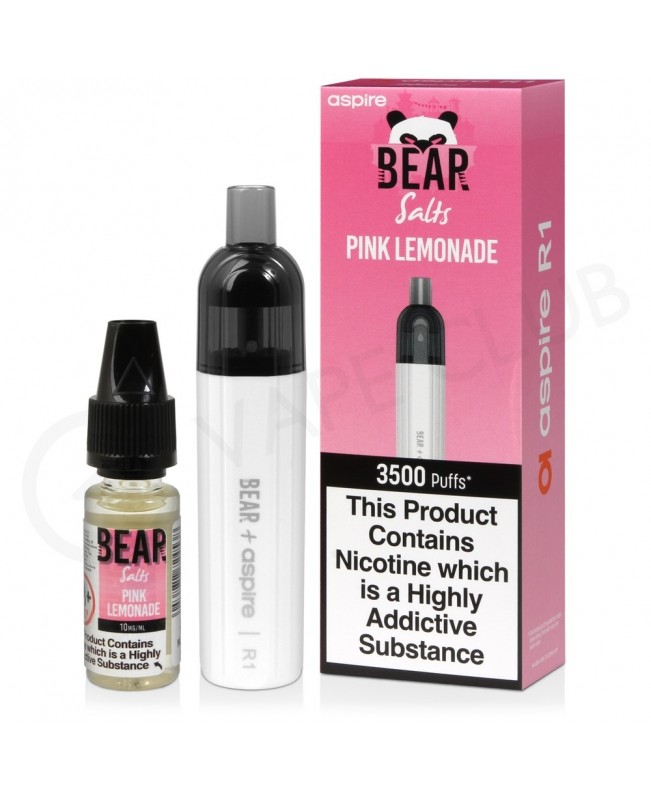 Pink Lemonade Bear Salts R1 disposable vape by Aspire delivers 3500 puffs, easily outlasting other disposables, making it the ideal choice for the vaper on the go. This refillable disposable features a 650mAh battery and a 2ml tank, both of which are built into the device. Arriving with a 10ml bottle of Bear Salts e-liquid you’ll have everything you need to start vaping straight away. Pink Lemonade nic salt e-liquid by Bear Salts combines the sweet taste of mixed red berries with a layer of zingy lemonade.